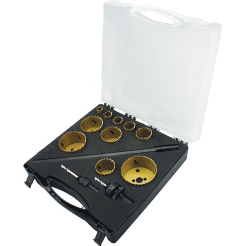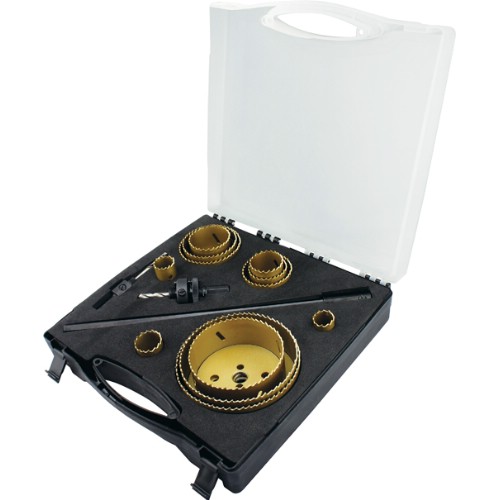 3834-SET-94 Hålsågsats med de nio vanligaste hålsågarna för arbeten inom verkstad, VVS och elinstallation.Innehåller hålsågar: 16, 19, 22, 25, 30, 35, 41, 51, 67 mm samt hållare 3834-ARBR-1130 och 3834-ARBR-11152 .